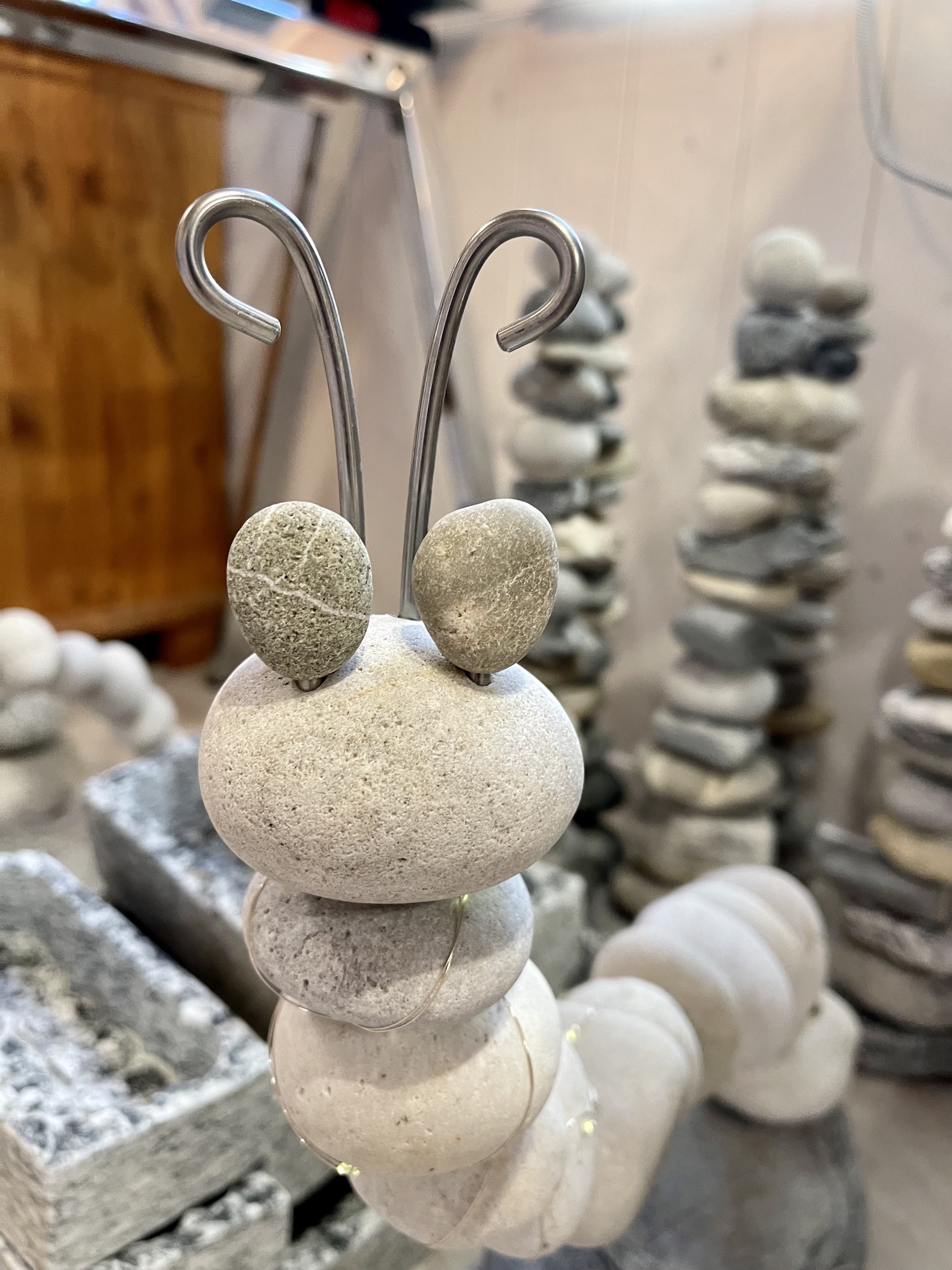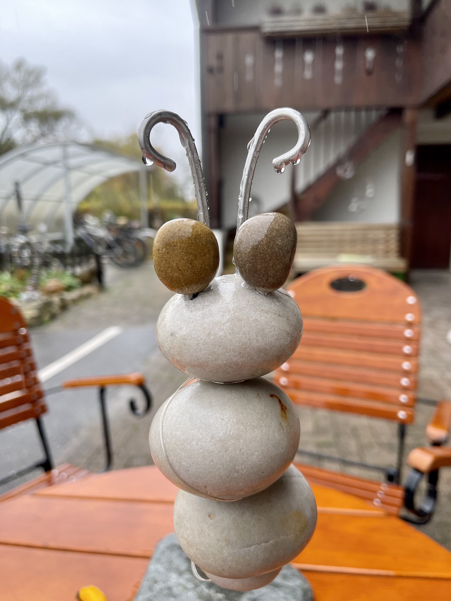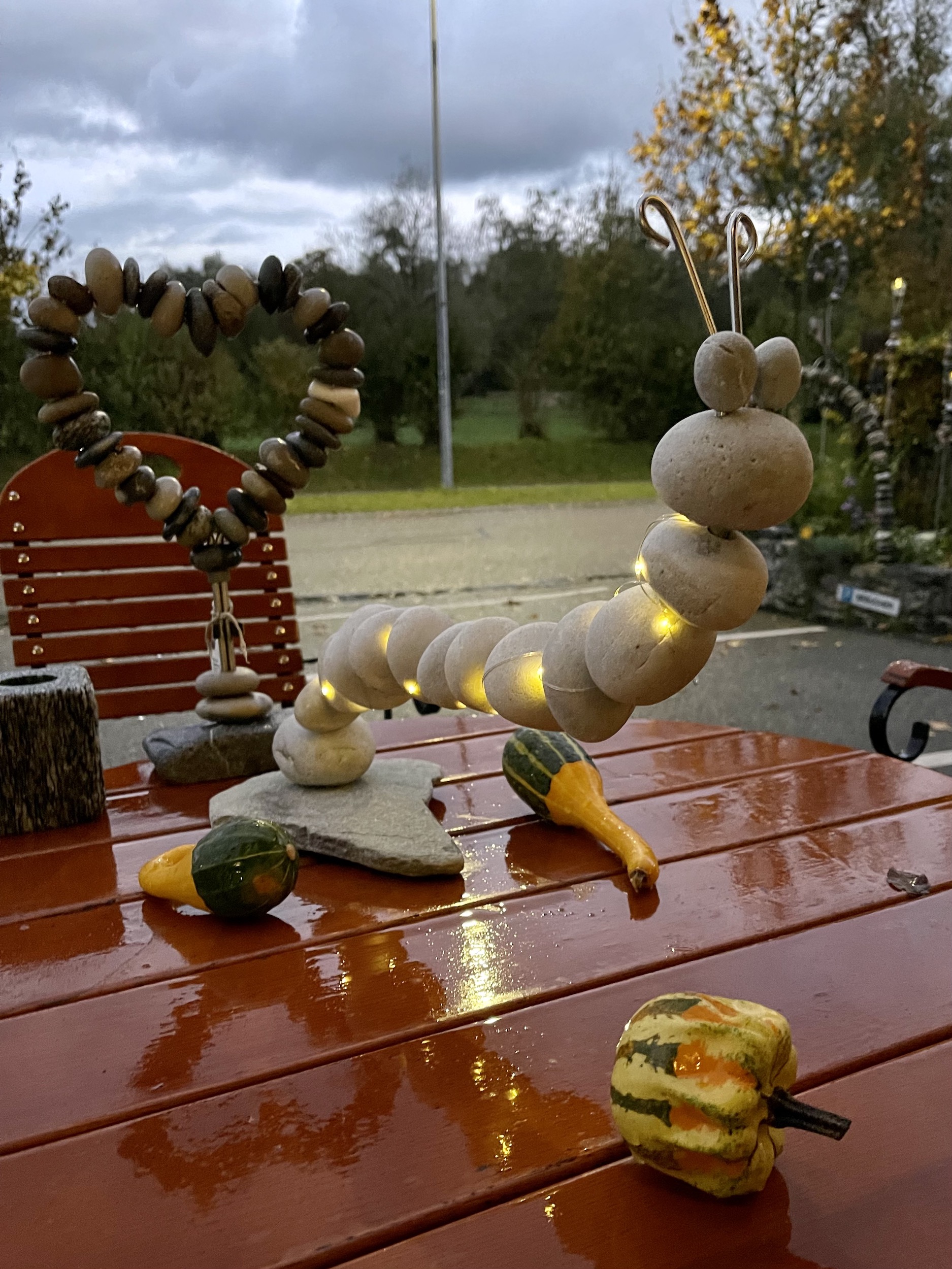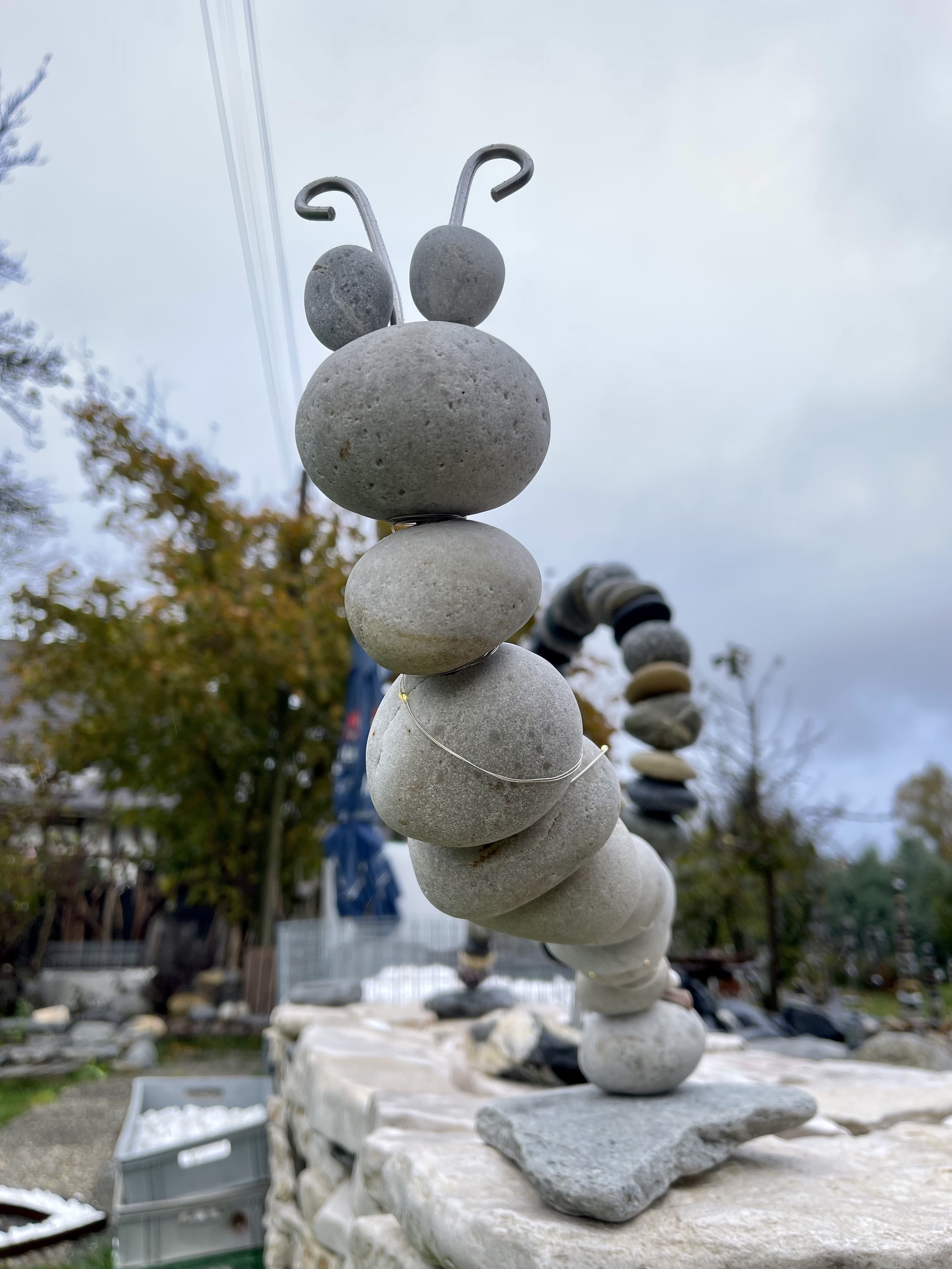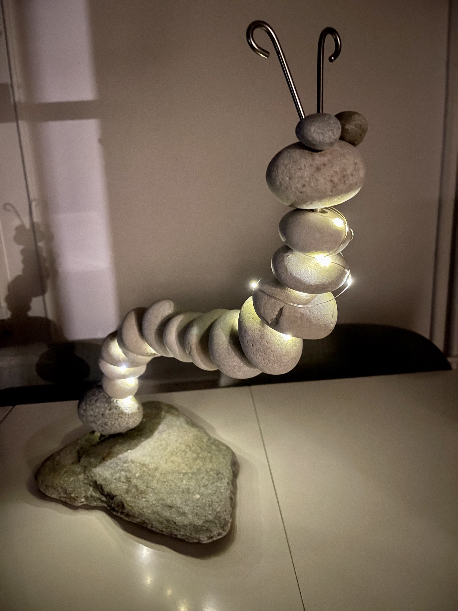 Kleine Solarlichter leuchten, wenn es dunkel wird. Eine Solarzelle im Stein versteckt, speichert die Sonnenstrahlen und lässt das Glühwürmchen glitzern