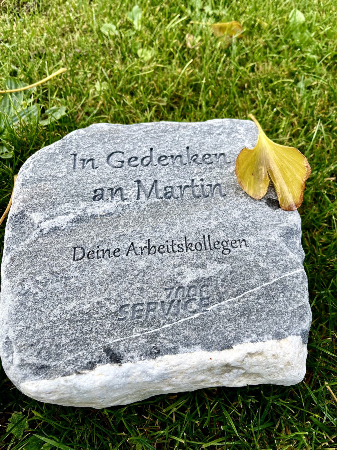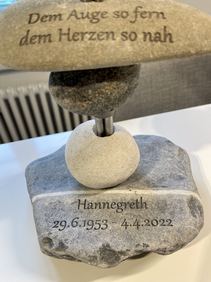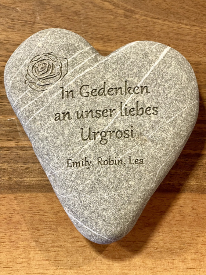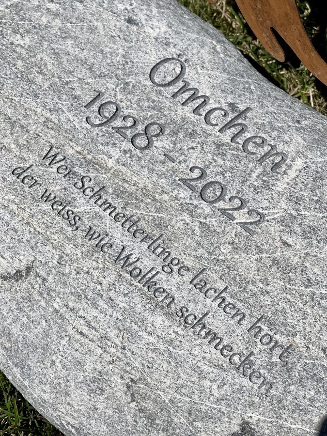 Hallo lieber Markus, Im Namen meiner gesamten Familie möchte ich mich bei dir, deinem Sohn und deinem Team aufrichtig bedanken für die fantastisch schöne Umsetzung und Verwirklichung des von uns gewünschten Grabsteins für meine verstorbene liebe Mom. Absolut Klasse, wie ihr unsere Wünsche und Ideen umgesetzt habt. Die perfekte Schriftart, die perfekte Grafik und dann eben deine Geduld und die Zeit um mit mir zusammen den richtigen, passenden Stein bei dir dafür zu finden. Wir als Familie sind euch mehr als nur dankbar und wirklich tief gerührt wie toll ihr das hinbekommen habt. Und meiner Mom selber gefällt der Stein ganz sicher, das weiss ich! Vielen Dank und Grüsse aus Zürich und Stadtroda/Thüringen/Deutschland