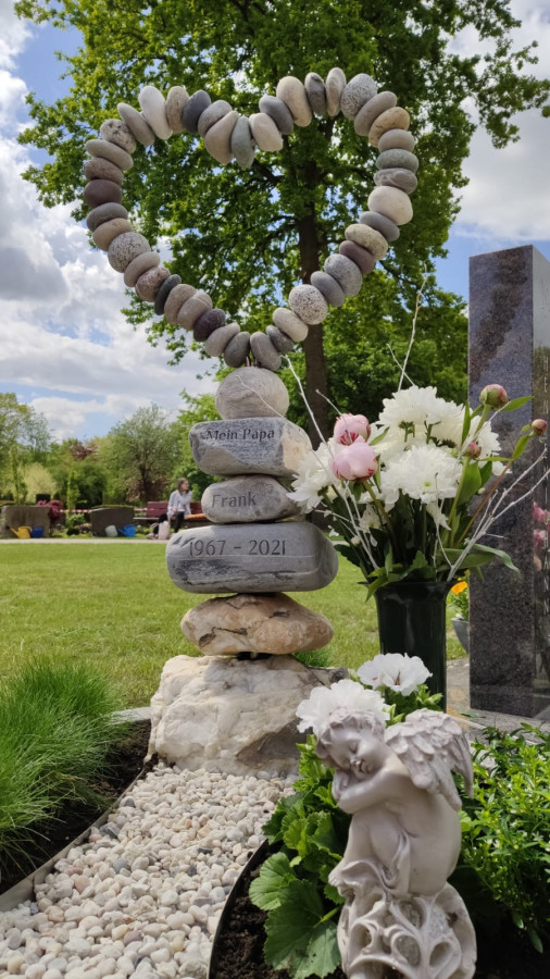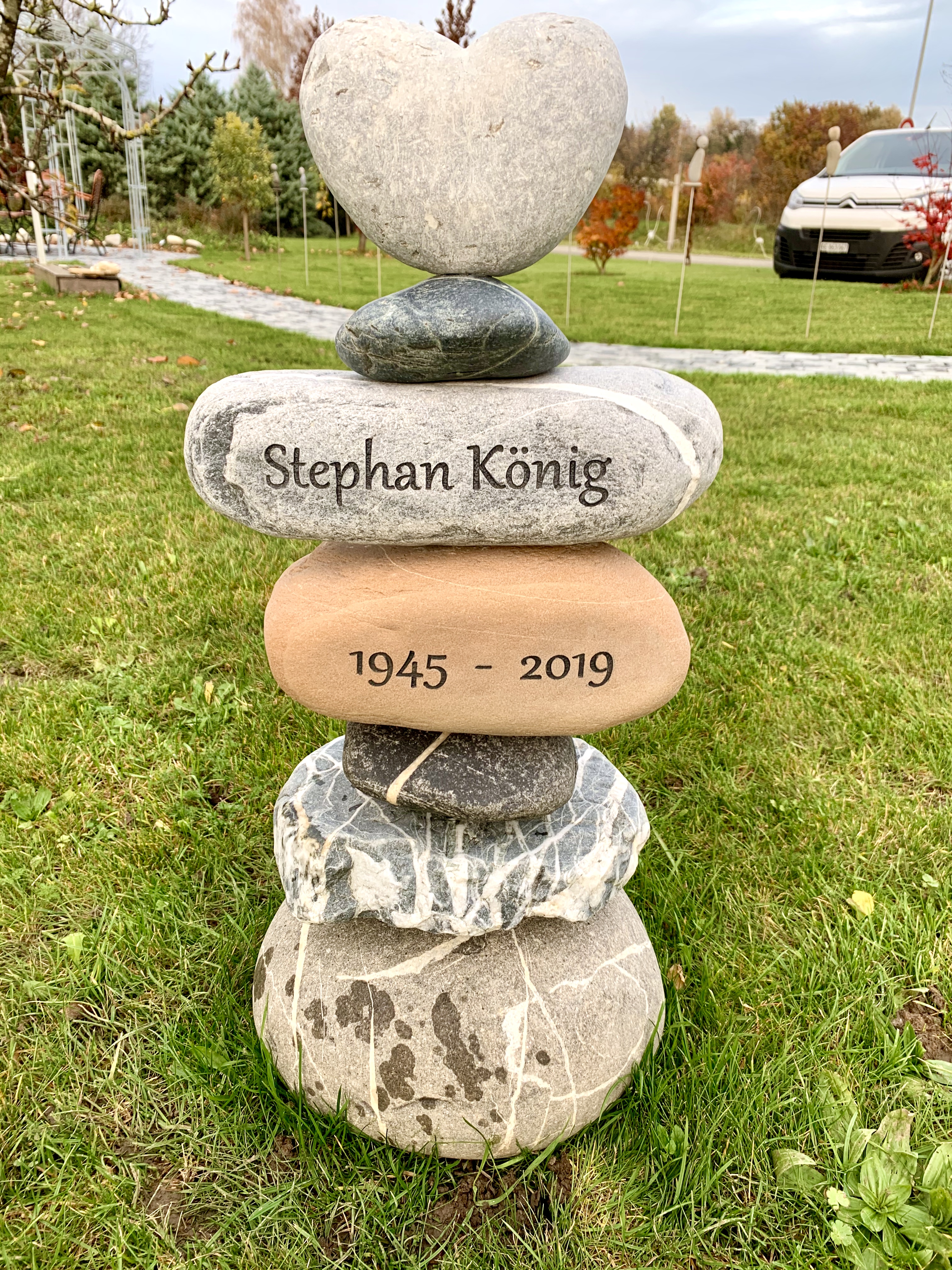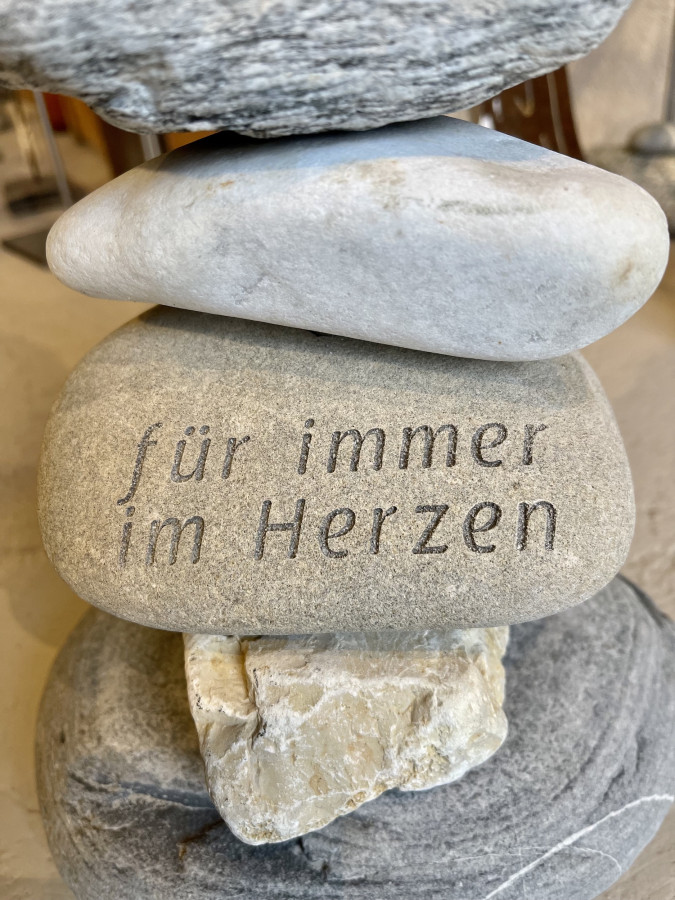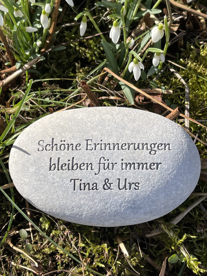 Taufsteine sind mit der Geburt verbunden; Grabsteine sind Zeichen für den Abschied. Unbearbeitete Flusssteine strahlen eine Natürlichkeit aus und erzählen Geschichten des Lebens. So einzigartig wie die Steine, sind die Erinnerungen und das Andenken ...