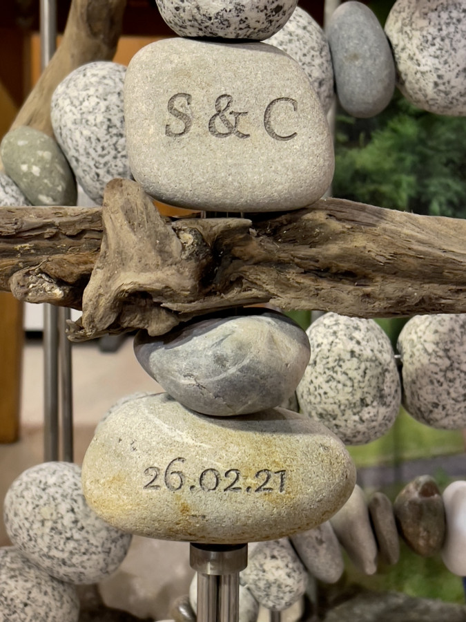 Gravierter Kieselstein