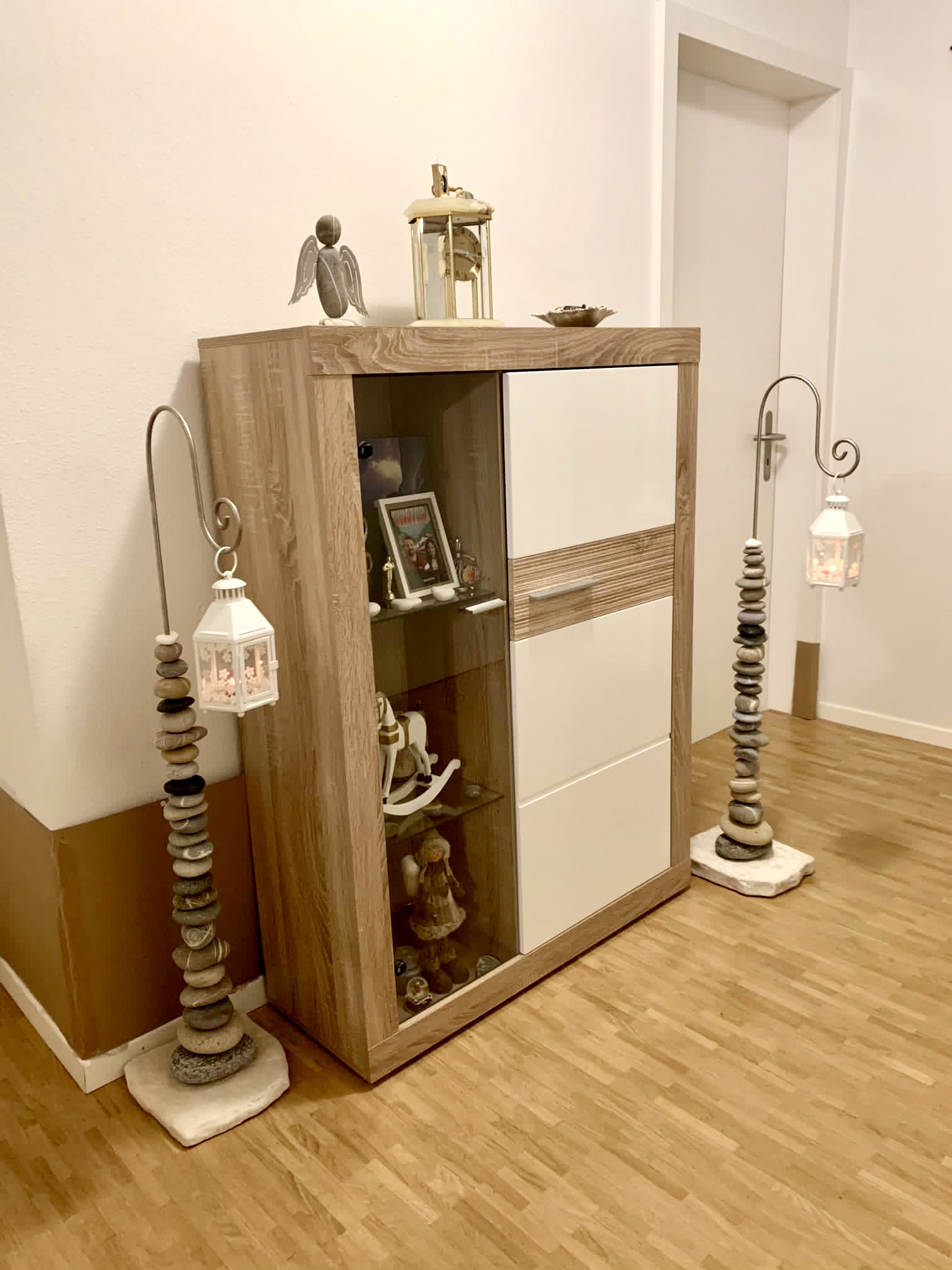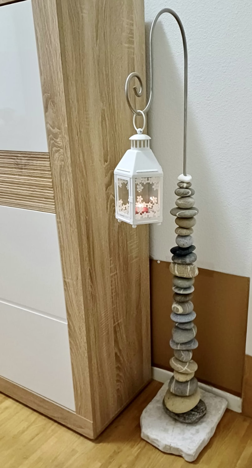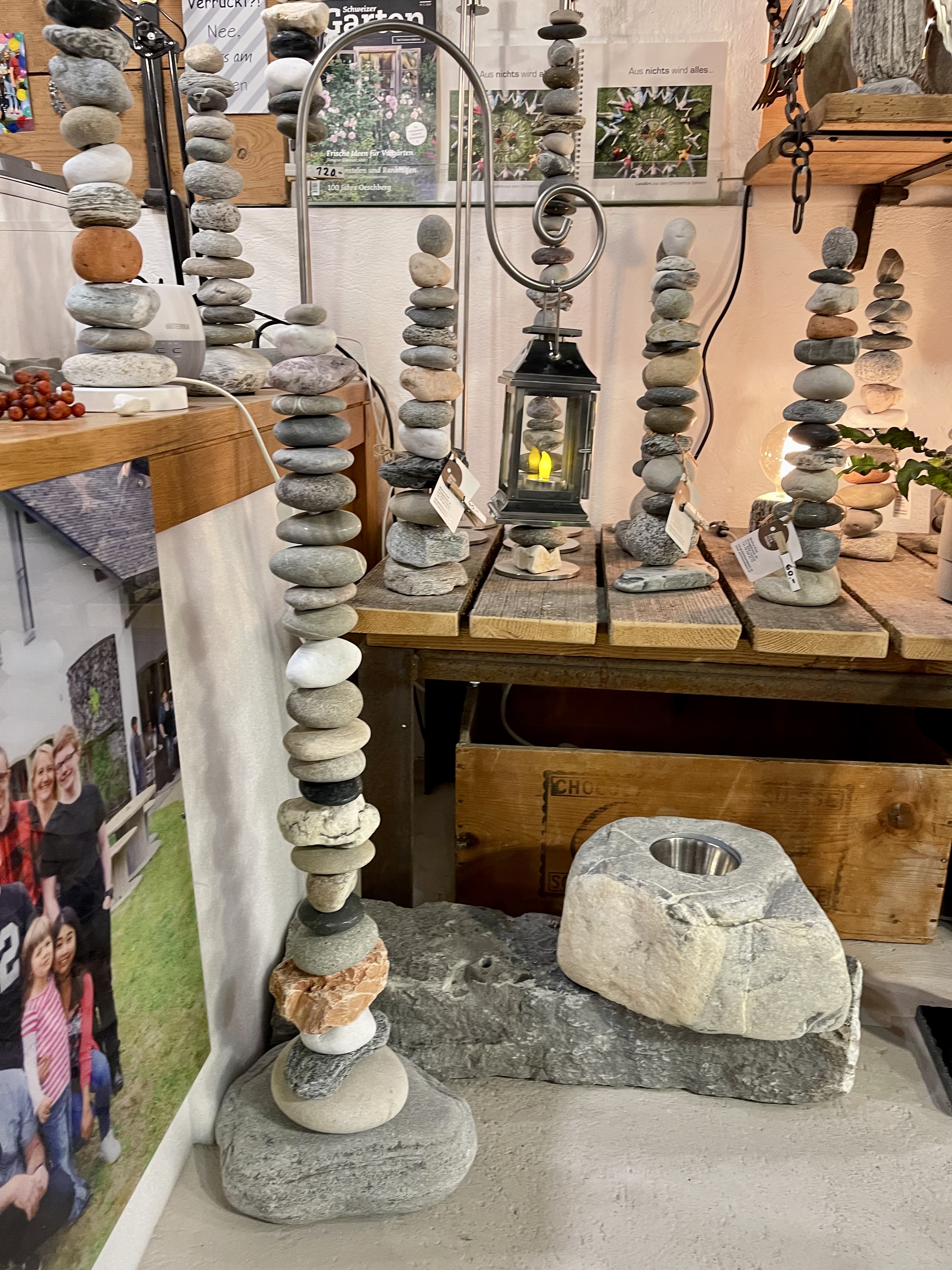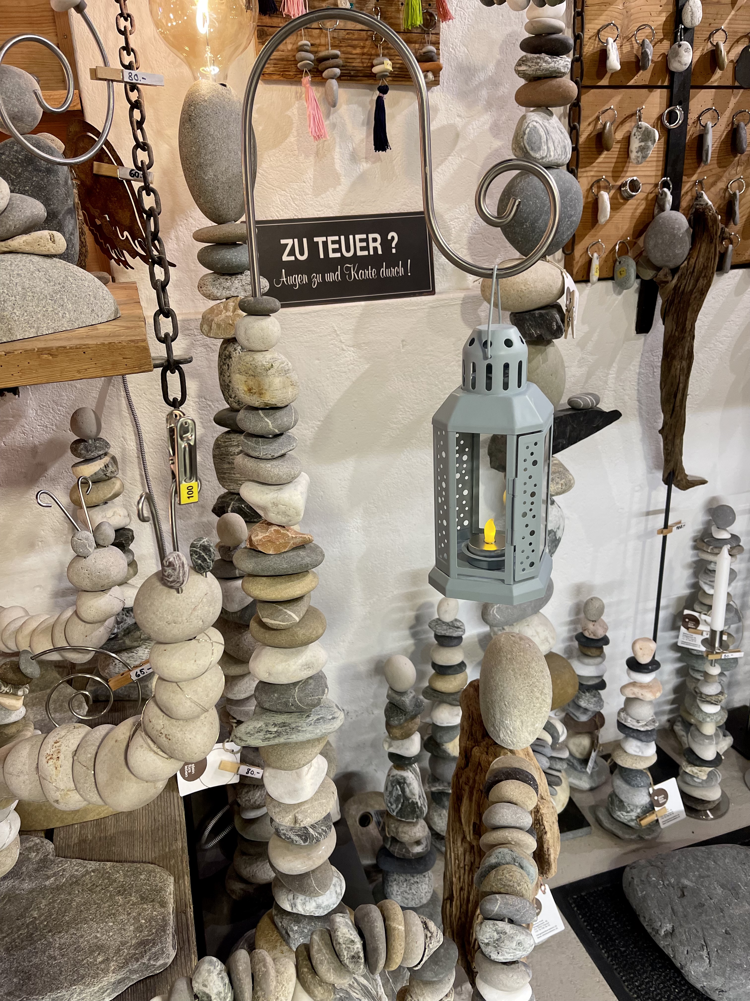Der stabile Steinsockel mit den vielen megaschönen Kieselsteinen aus der Emme ist ein Kunstwerk für drinnen oder draussen.