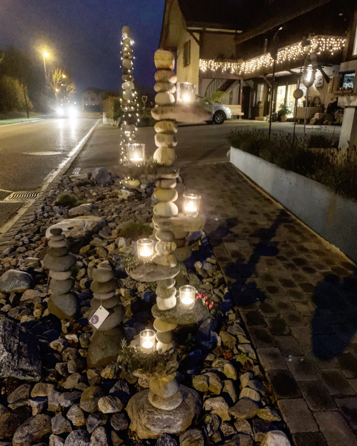 Saisonal bieten sie unbegrenzte Dekomöglichkeiten. Der Tannzapfen vom Waldspaziergang findet dort eine passende Ablage und auch der Stein vom Fluss. Die Rechaudkerzen, der Neuschnee und die Tannzweige schmücken die Etagere weihnachtlich.