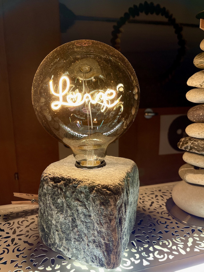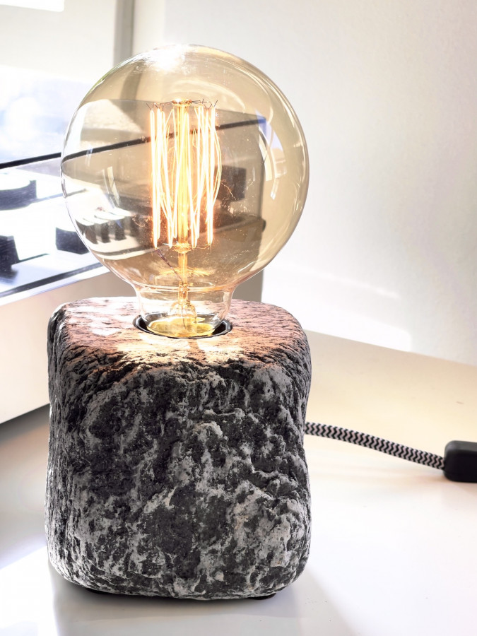 aus einem Maggi-Stein in Handarbeit gefertigt.