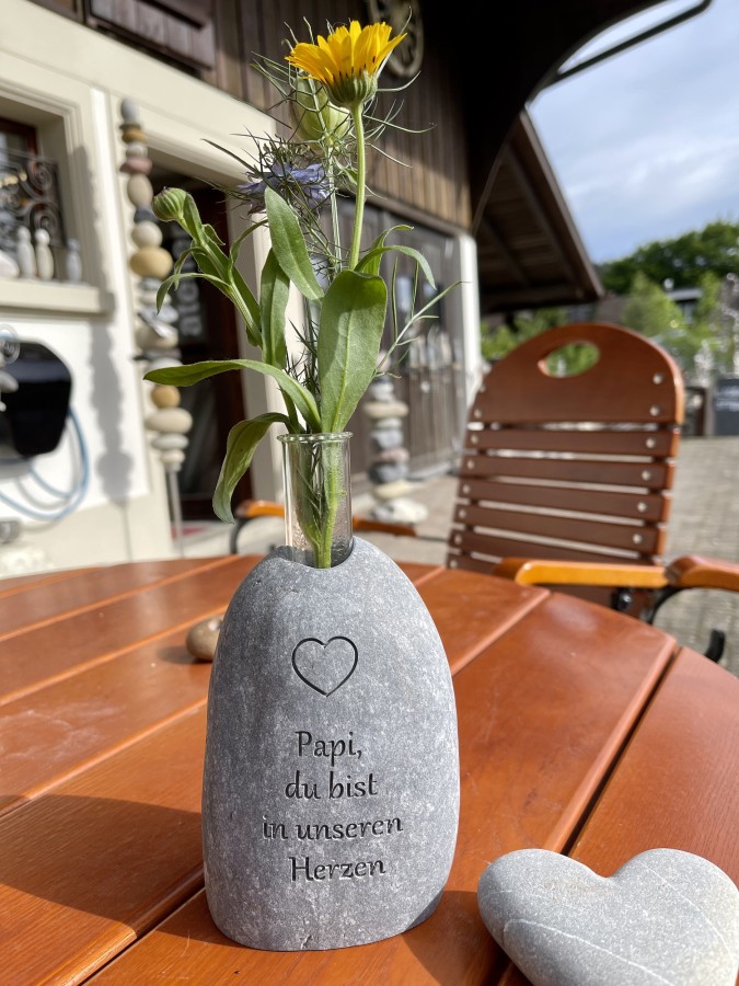 Steinvase mit Gravur