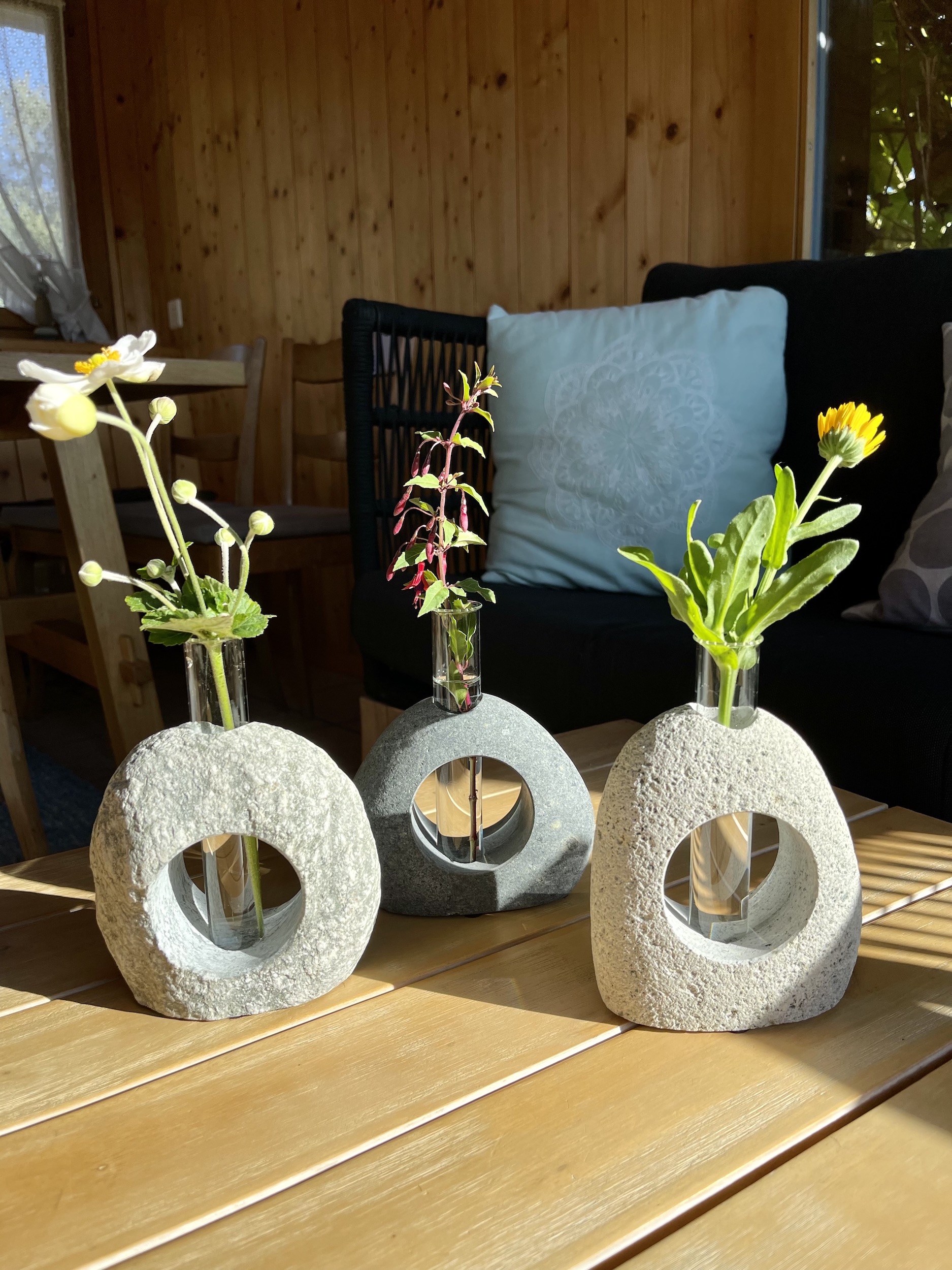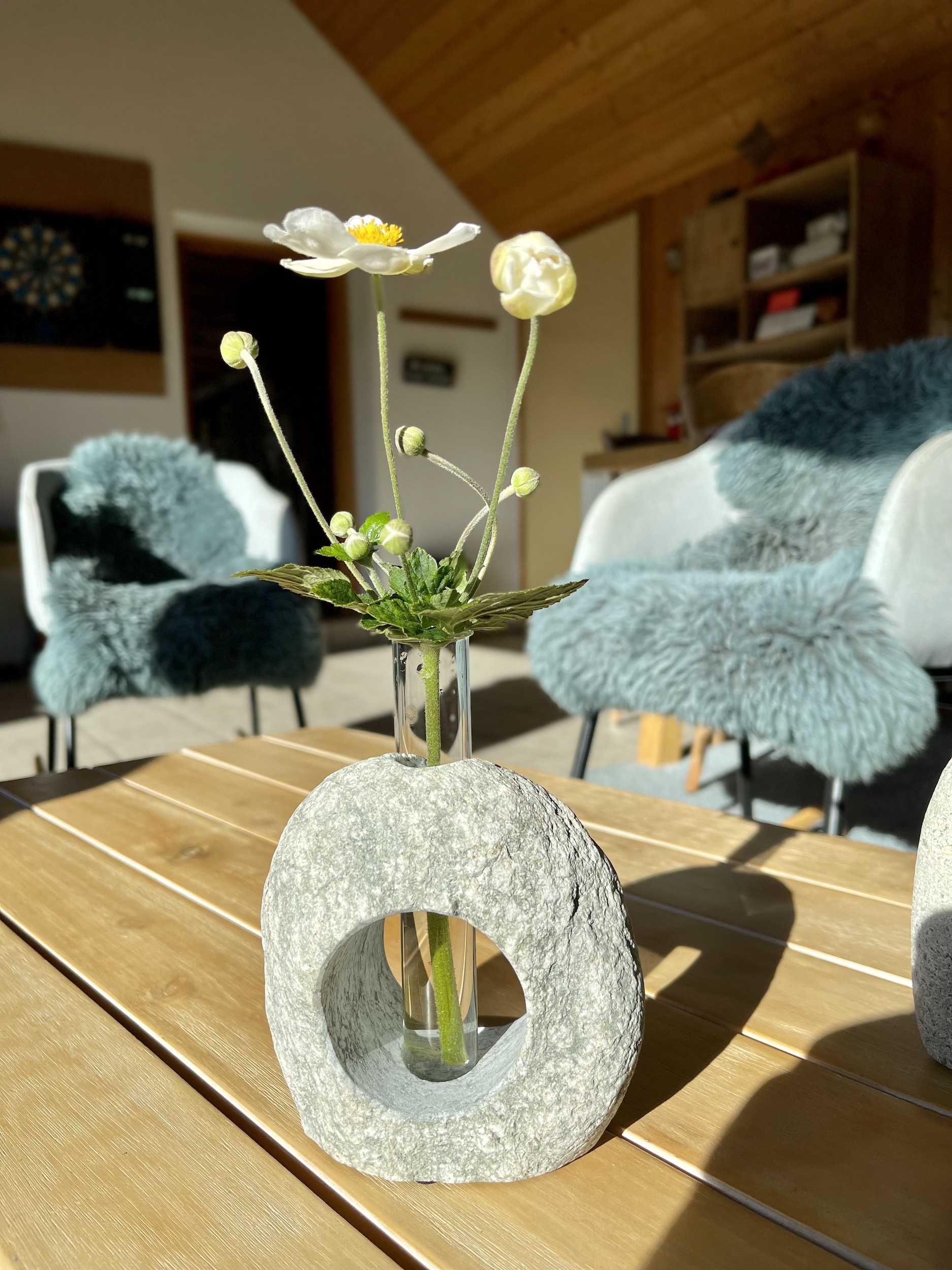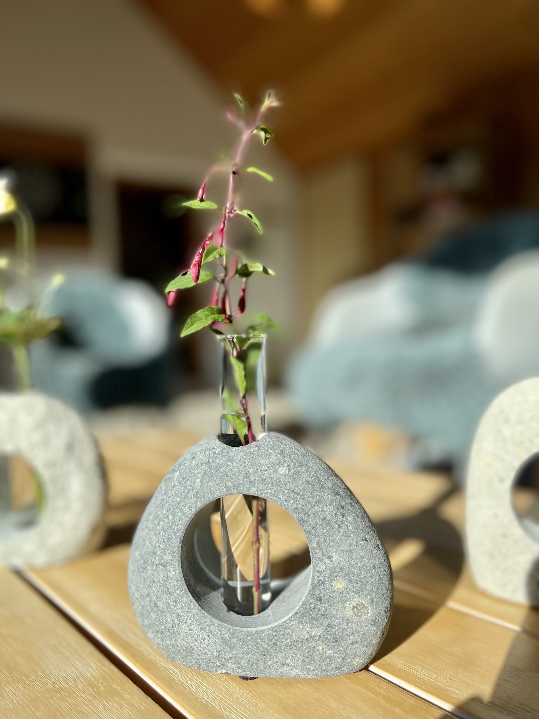 Das Wasser kann direkt in den Stein gefüllt werden oder in das dekorative Reagenzglas.