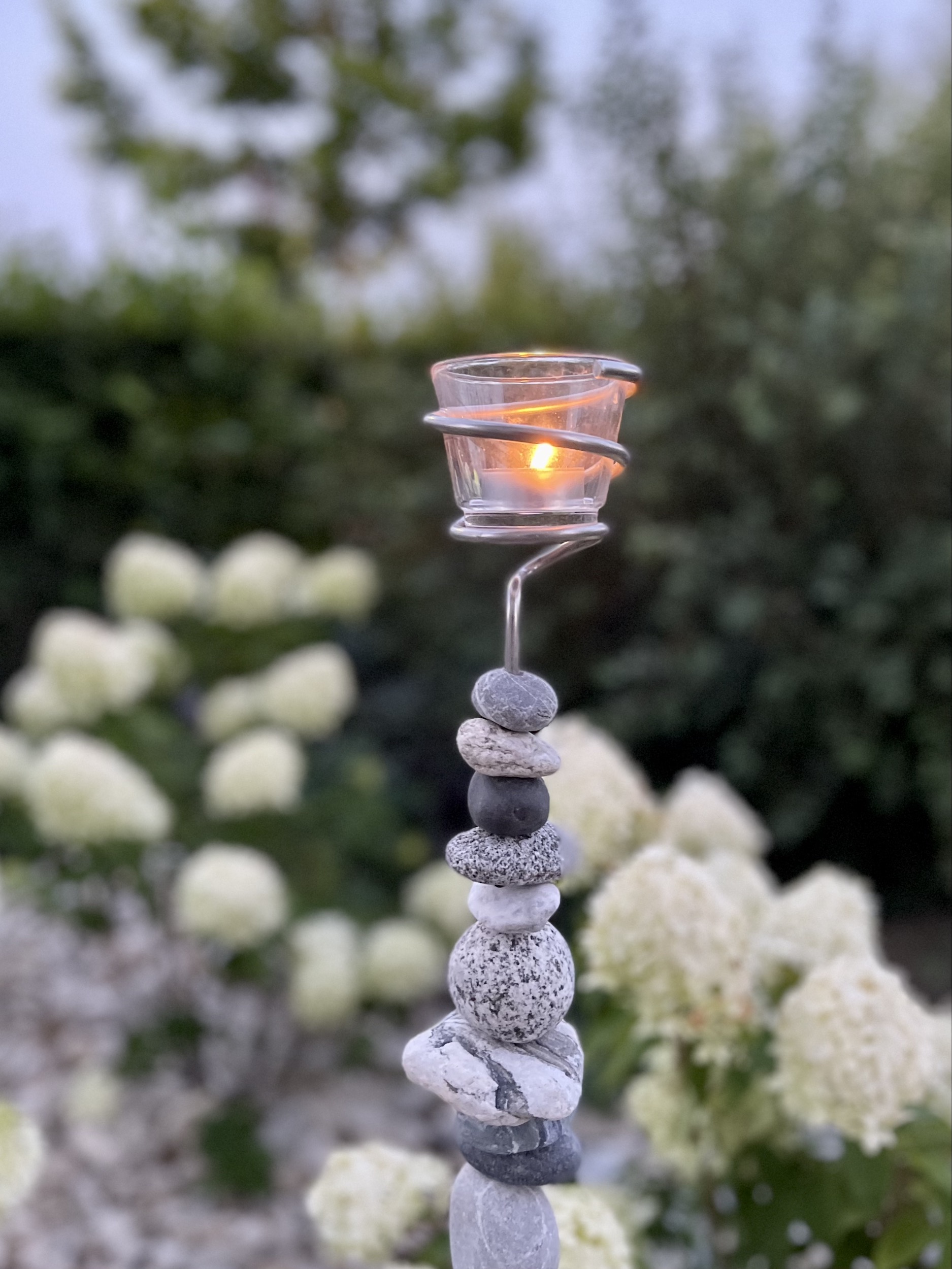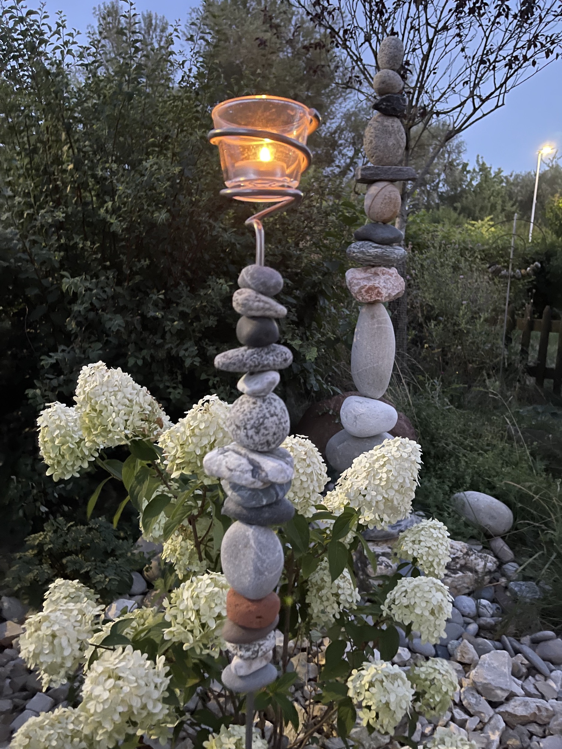 Eine romantische Kerze im Freien … funktioniert leider meistens nicht. Meine Windlichter schützen die Kerzenflamme mit einer Glasschale, welche eine Regenabflussbohrung hat. Für Freude und Romantik, auch an stürmischen Abenden.