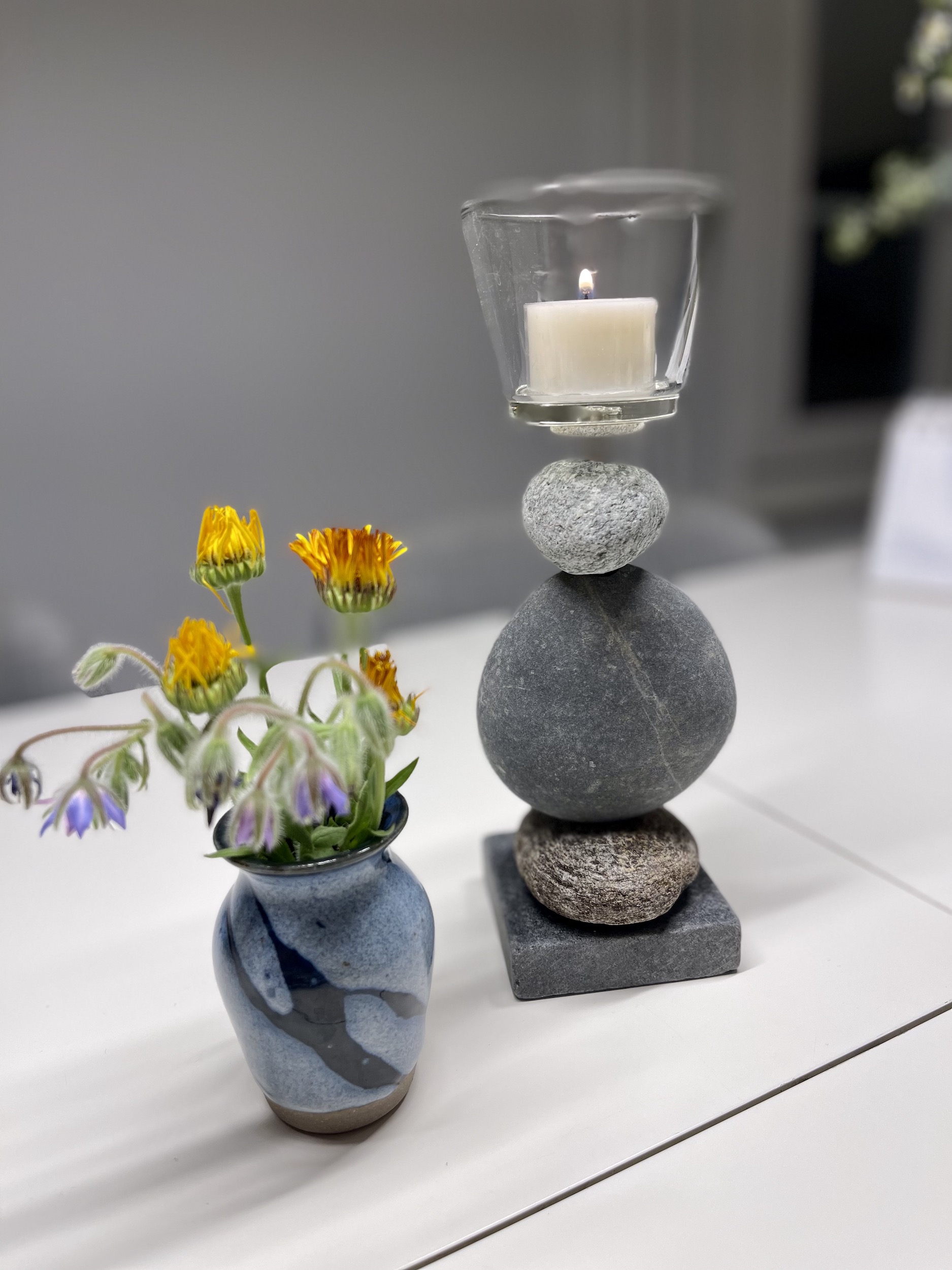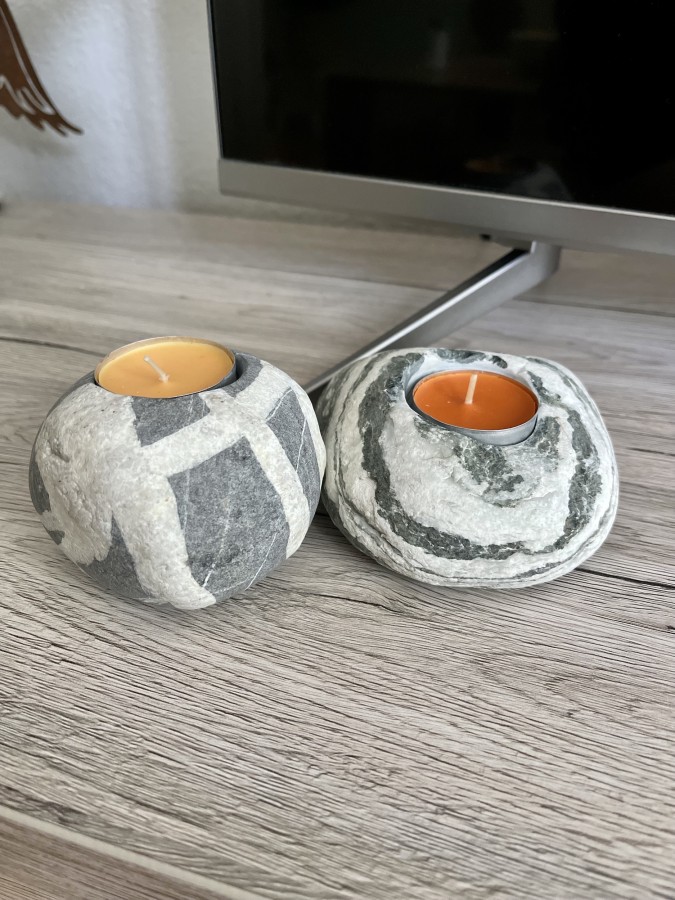 Edelstahl, Glas gebohrt, Natursteine vom Meer und so …