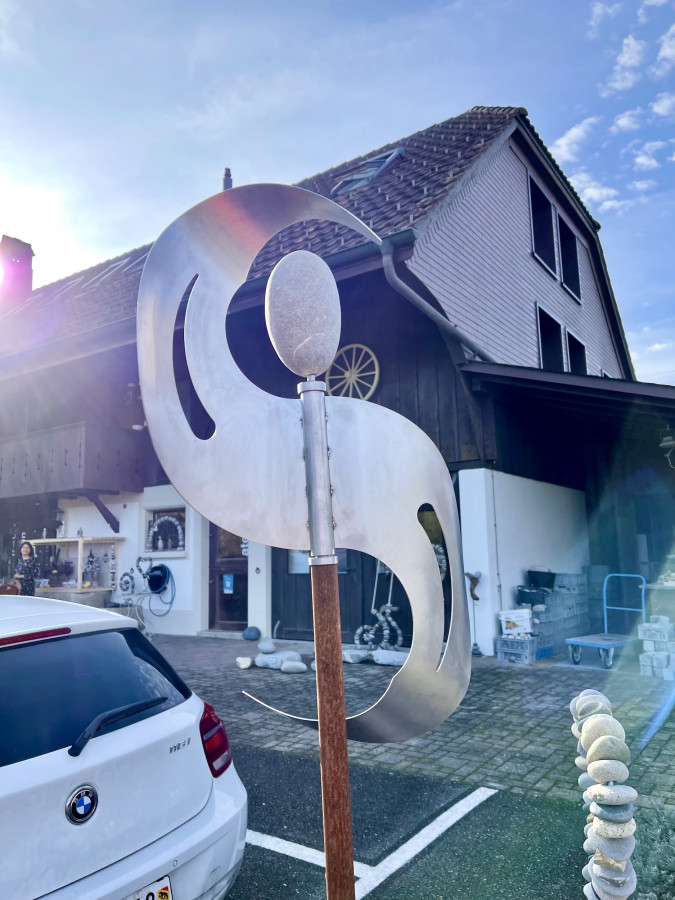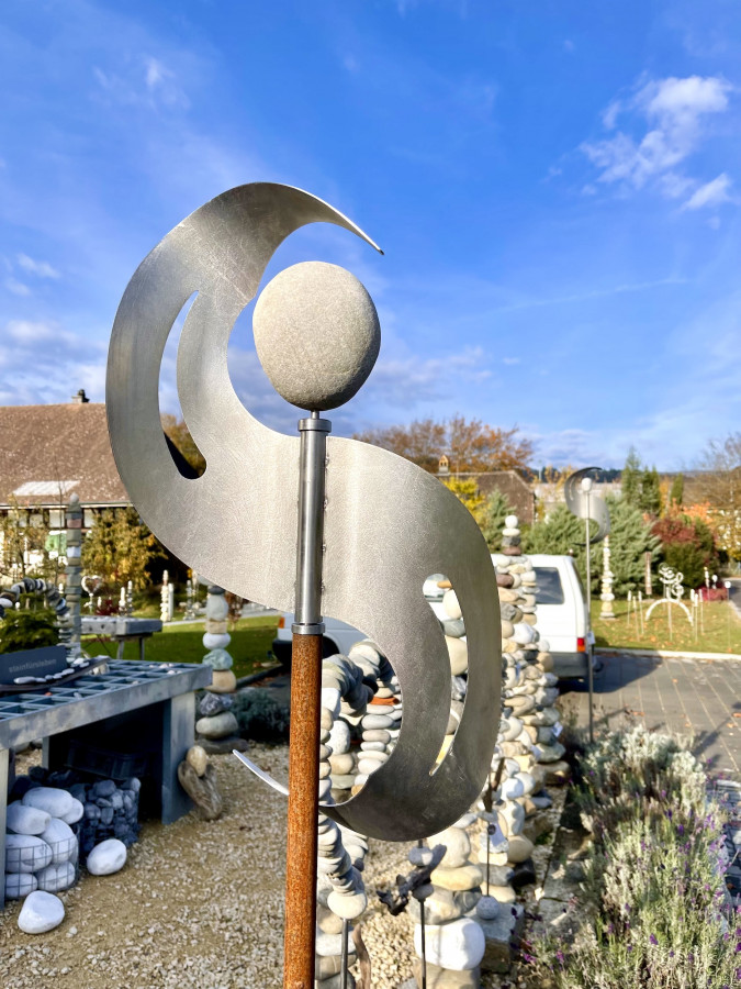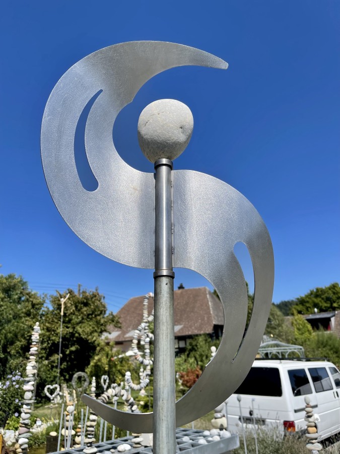 Dieses Windspiel ist punkto Design und Funktionalität unübertroffen. Der Tänzer dreht seine Runden, mal langsam, mal schnell - nur bei absoluter Windstille ruht er sich aus.
